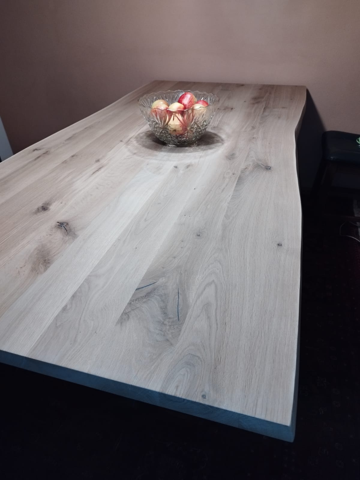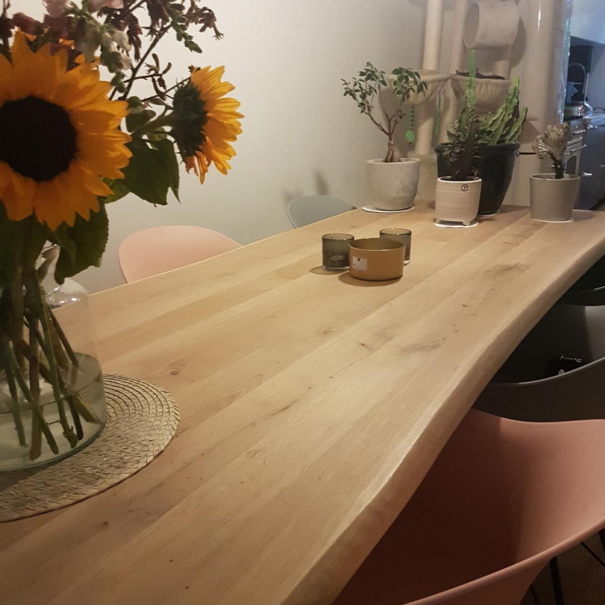 Massivholzplatte Eiche für Tischplatte – Baumkante auf 2 seite – Dicke 22 mm – durchgehende Lamellen – B/C Qualität aus der Manufaktur EikenHuis