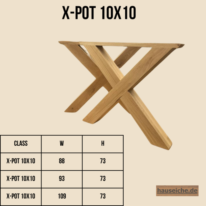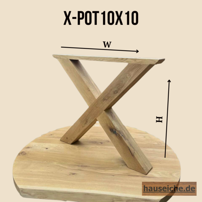 Diese Eichenholz-Tischbeine in X-Form setzen einen stilvollen Akzent für Ihren (Ess-)Tisch. Sie werden von erfahrenen Handwerkern in Handarbeit gefertigt, was höchste Qualität und ein einzigartiges Erscheinungsbild garantiert.